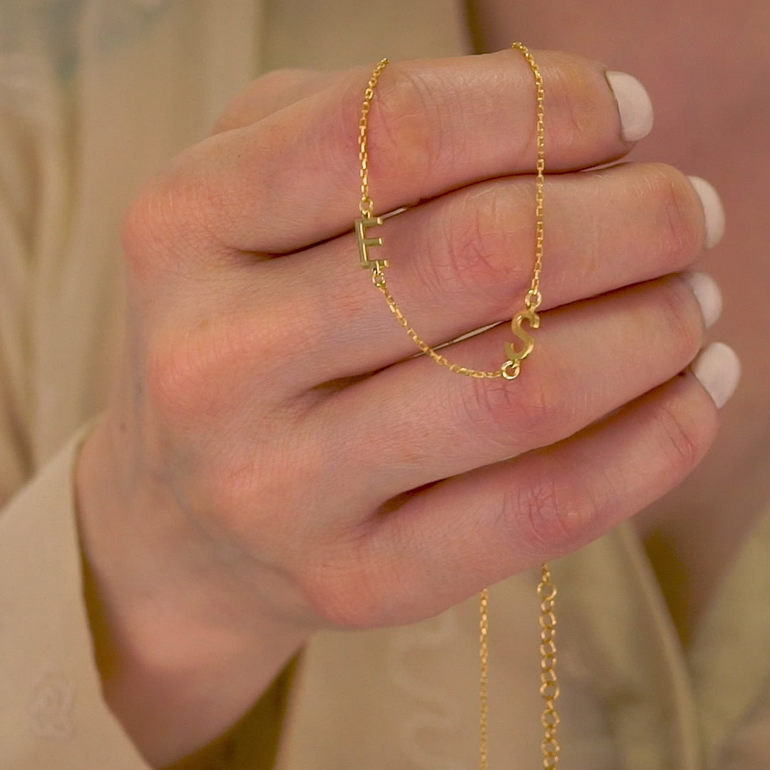The gold-plated two-letter side necklace combines modern design with a personal touch to bring elegance to your neck.